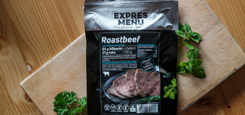 Hovězí kulatá plec z mladého býčka z českých chovů, 24h marinovaná a pomalu pečená. Na přípravu 150 g bylo použito 230 g masa.